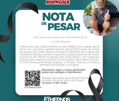 Com profundo pesar, que comunicamos o falecimento do Sr. Luiz Wroblewski com idade de 61 anos, ocorrido dia 09/06. Sr. Luiz está sendo velado no Sa