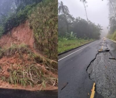 O temporal causou quedas de árvores, barreiras de terra sobre a pista, desbarrancamentos e comprometimento severo da pavimentação asfáltica A Prefeit