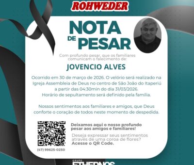 É com profundo pesar que os familiares comunicam o falecimento de: JOVENCIO ALVES O falecimento ocorreu nesta segunda-feira, dia 30 de março de 20