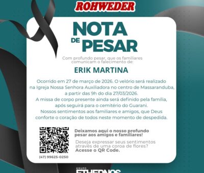 Leia MaisÉ com profundo pesar que os familiares comunicam o falecimento de: ERIK MARTINA O falecimento ocorreu nesta sexta-feira, dia 27 de março de 2026.