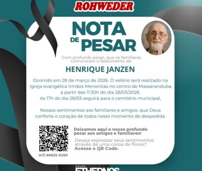 Leia MaisÉ com profundo pesar que os familiares comunicam o falecimento de: HENRIQUE JANZEN O falecimento ocorreu neste sábado, dia 28 de março de 2026. He