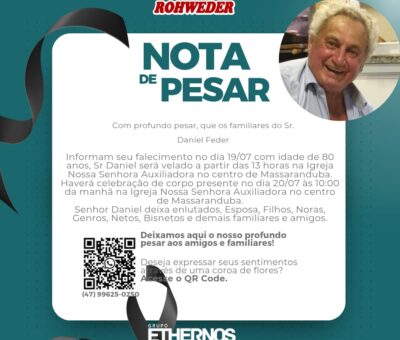 Com profundo pesar, que comunicamos o falecimento do Sr. Daniel Feder com idade de 80 anos, ocorrido dia 19/07. Sr. Daniel será velado a partir das