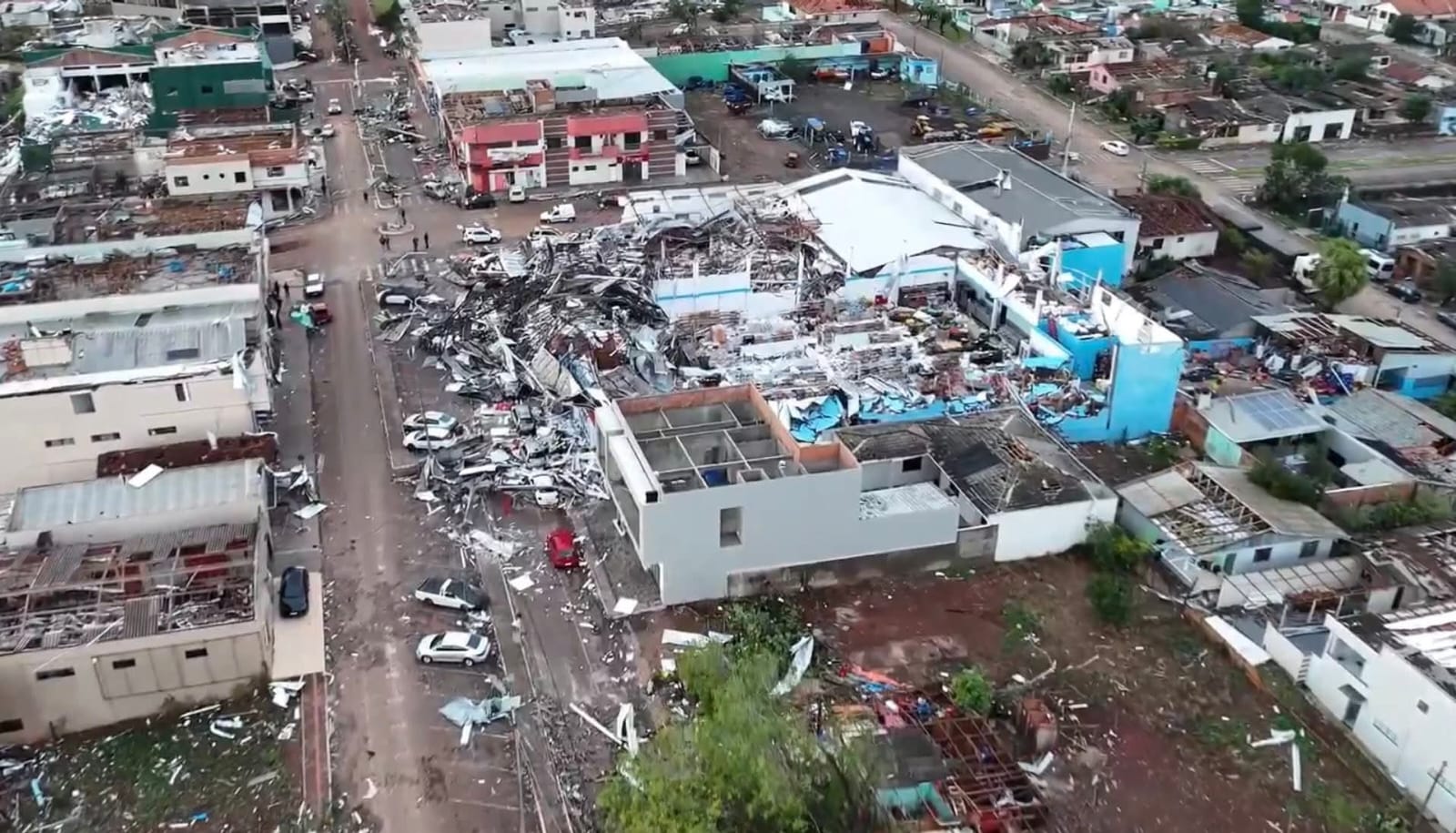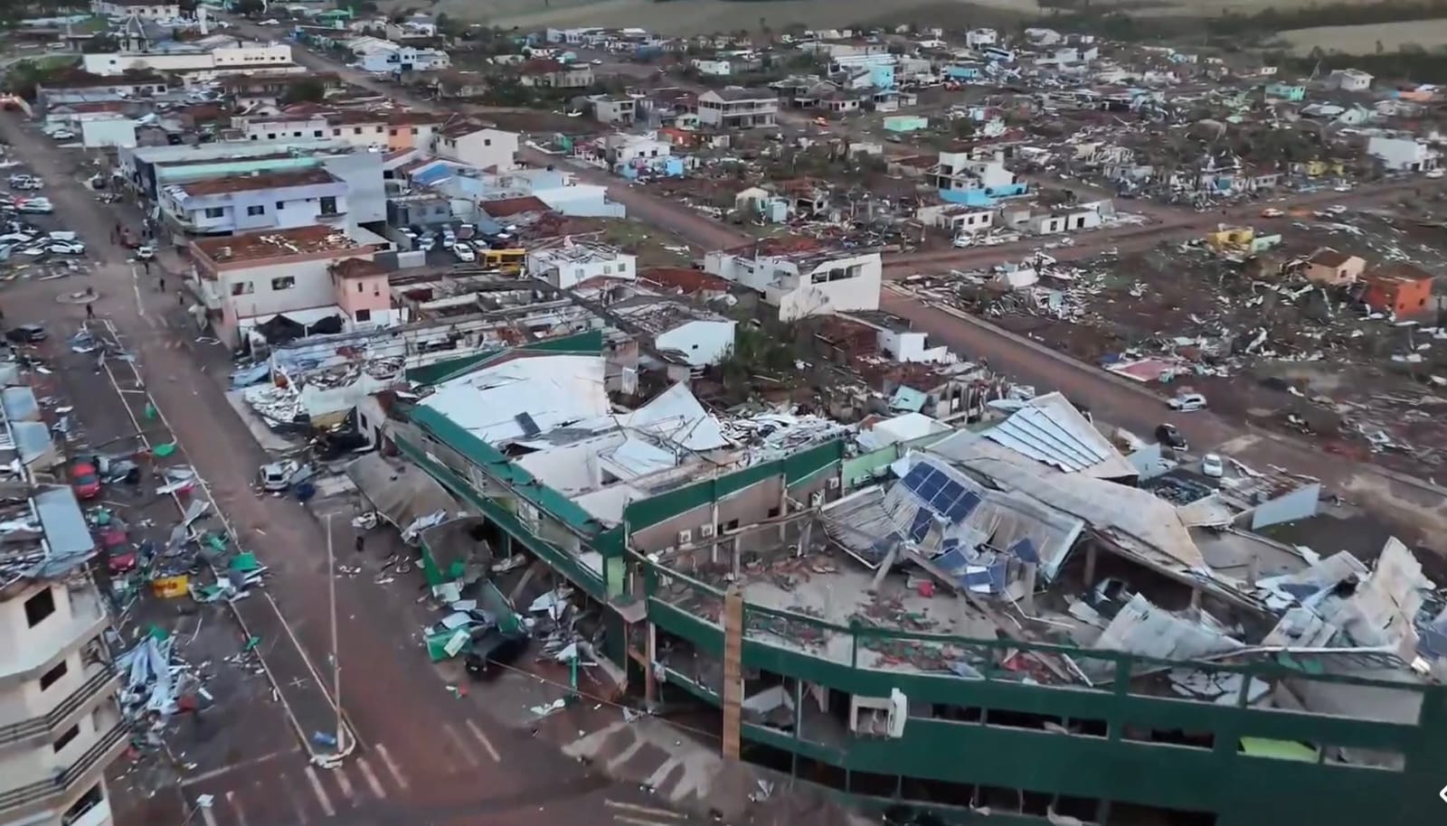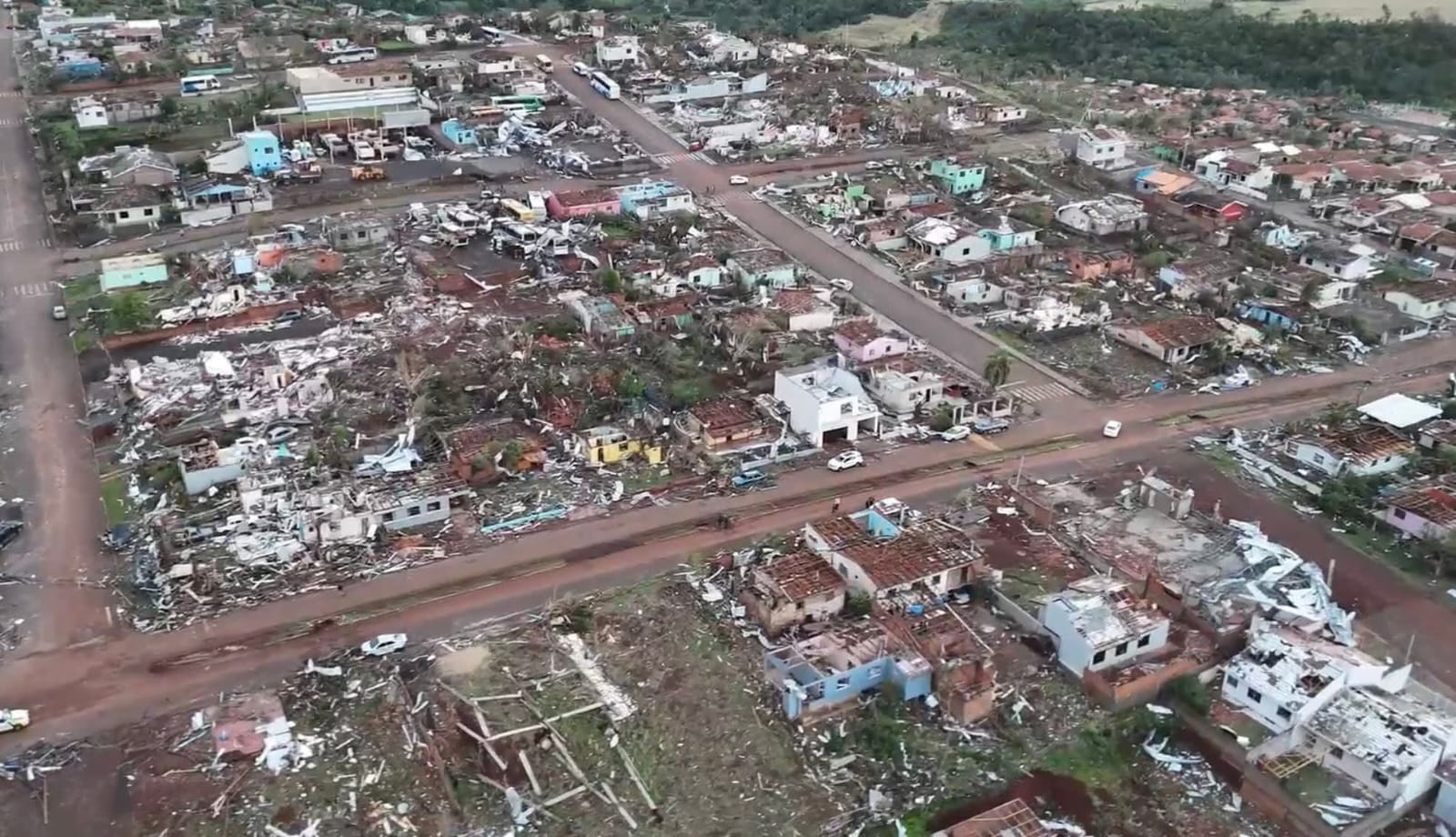 De acordo com o governo estadual, o fenômeno provocou danos severos em residências, estabelecimentos comerciais e na infraestrutura urbana, afetando cerca de 80% da área central do município.