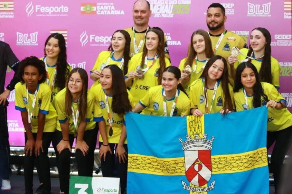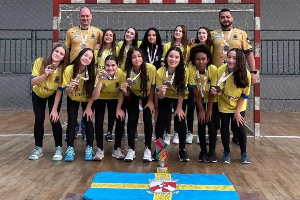Nesta segunda-feira, 14 de julho, a equipe feminina de handebol da Escola Municipal de Ensino Fundamental Ministro Pedro Aleixo encerrou sua participação na etapa estadual dos 41º Jogos Escolares de Santa Catarina (JESC), na categoria de 12 a 14 anos, com a conquista do 3º lugar na competição.