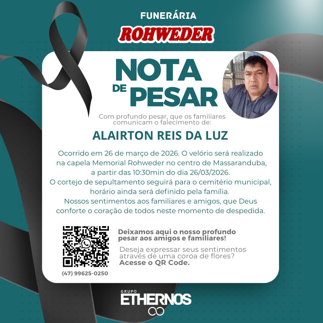 O falecimento ocorreu nesta quinta-feira, dia 26 de março de 2026. A notícia entristece familiares, amigos e toda a comunidade de Massaranduba, onde Alairton era conhecido.
