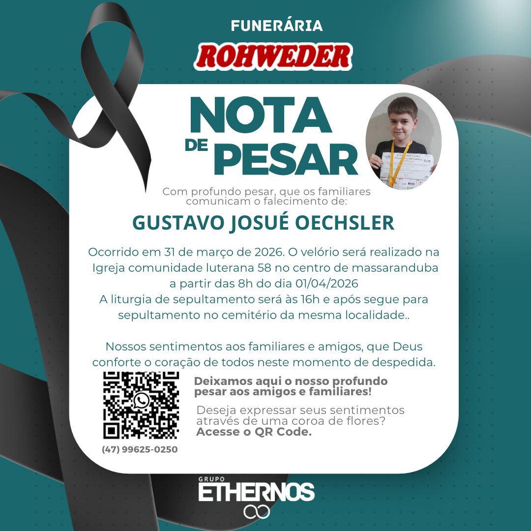 O falecimento ocorreu nesta terça-feira, dia 31 de março de 2026. Gustavo era membro da comunidade de Massaranduba, e sua partida deixa enlutados familiares, amigos e conhecidos.
