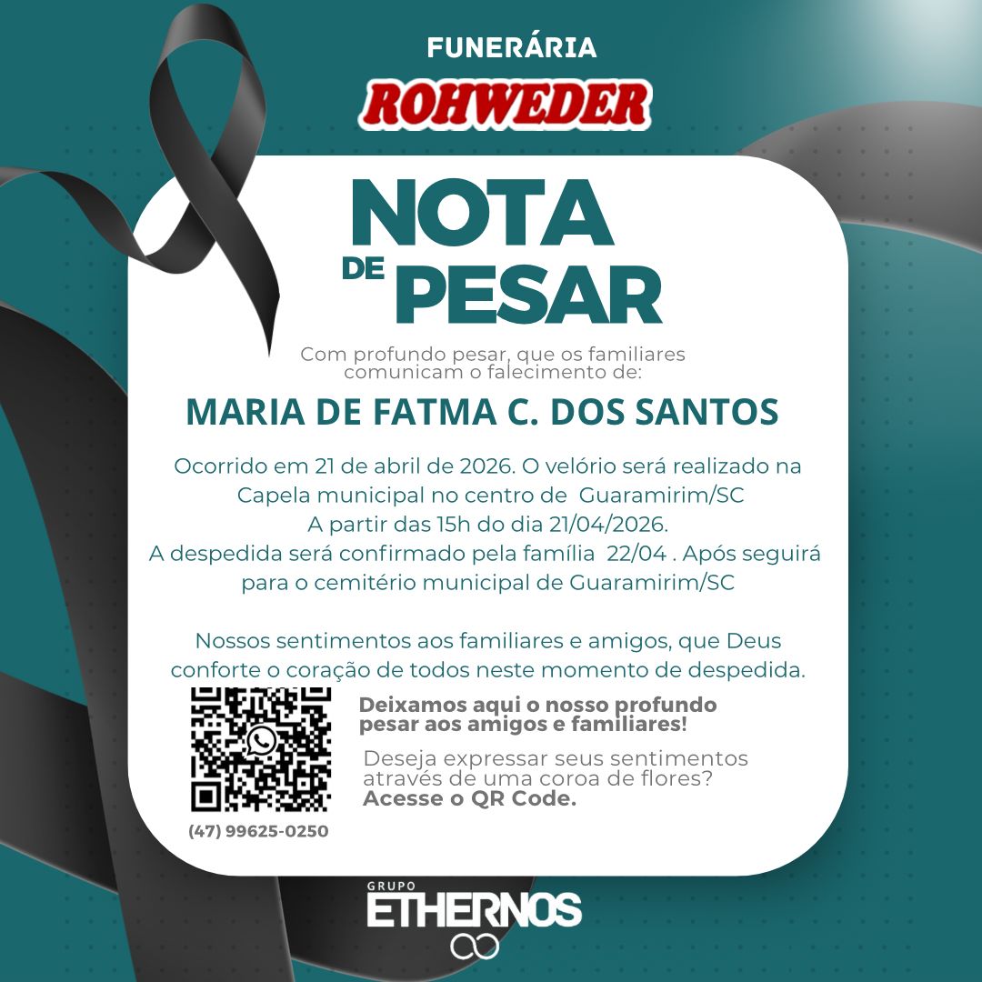 • Sepultamento: Após os atos de despedida, o corpo seguirá para o Cemitério Municipal de Guaramirim.